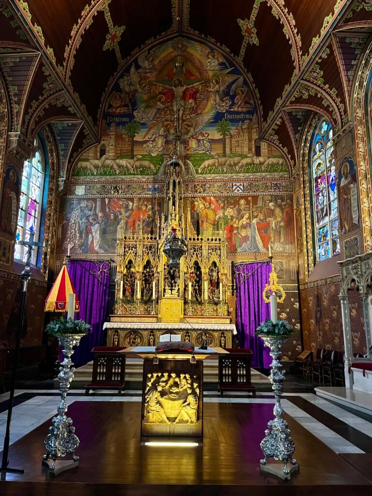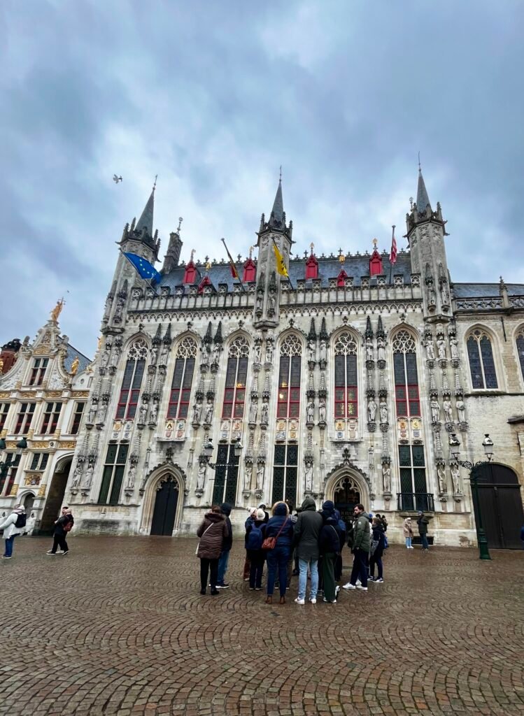 A pocos pasos, la Plaza Burg te sorprenderá con su elegancia. En ella se alzan dos joyas: el Ayuntamiento de Brujas, con su fachada gótica de 1376, y la Basílica de la Santa Sangre, que guarda una reliquia única: unas gotas de la sangre de Cristo traídas desde Tierra Santa. Su capilla dorada parece sacada de una leyenda.