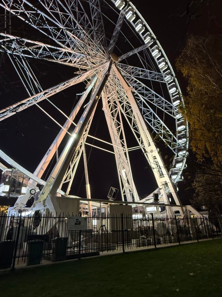 La gran noria ofrece un punto de vista diferente. Desde lo alto, se aprecia el Danubio y los puentes, con un ambiente relajado y una sensación de tranquilidad que contrasta con el bullicio de la ciudad.