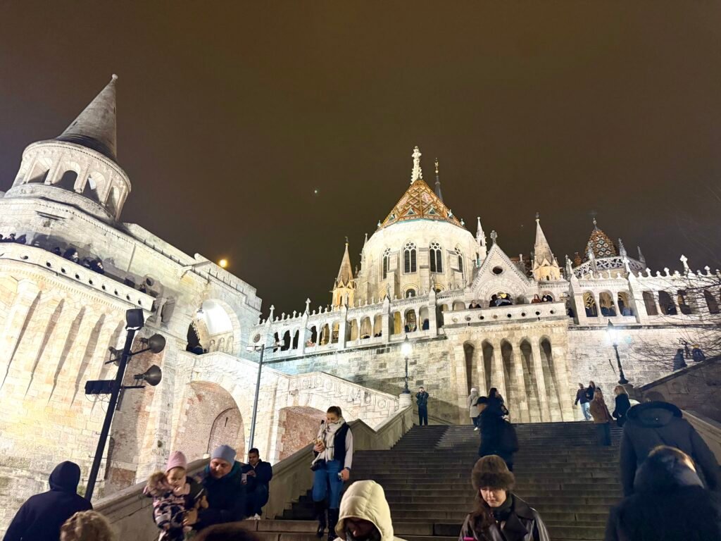 Justo al lado, la Iglesia de San Matías completa la jornada con su interior decorado con frescos, mosaicos y detalles arquitectónicos que reflejan siglos de historia. Es un cierre emotivo y elegante para un primer día intenso en Budapest.